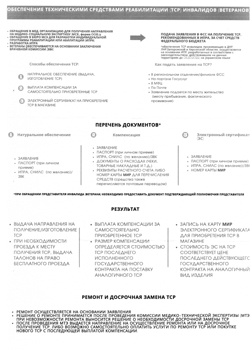 Памятка по вопросу обеспечения технич. средствами реабилитации граждан, покинувших территорию Украины, и прибывших на тер. РФ, а также военнослужащих, и сотрудников иных структур, добровольцев, принимавших участие в СВО, которым установлена инвалидность