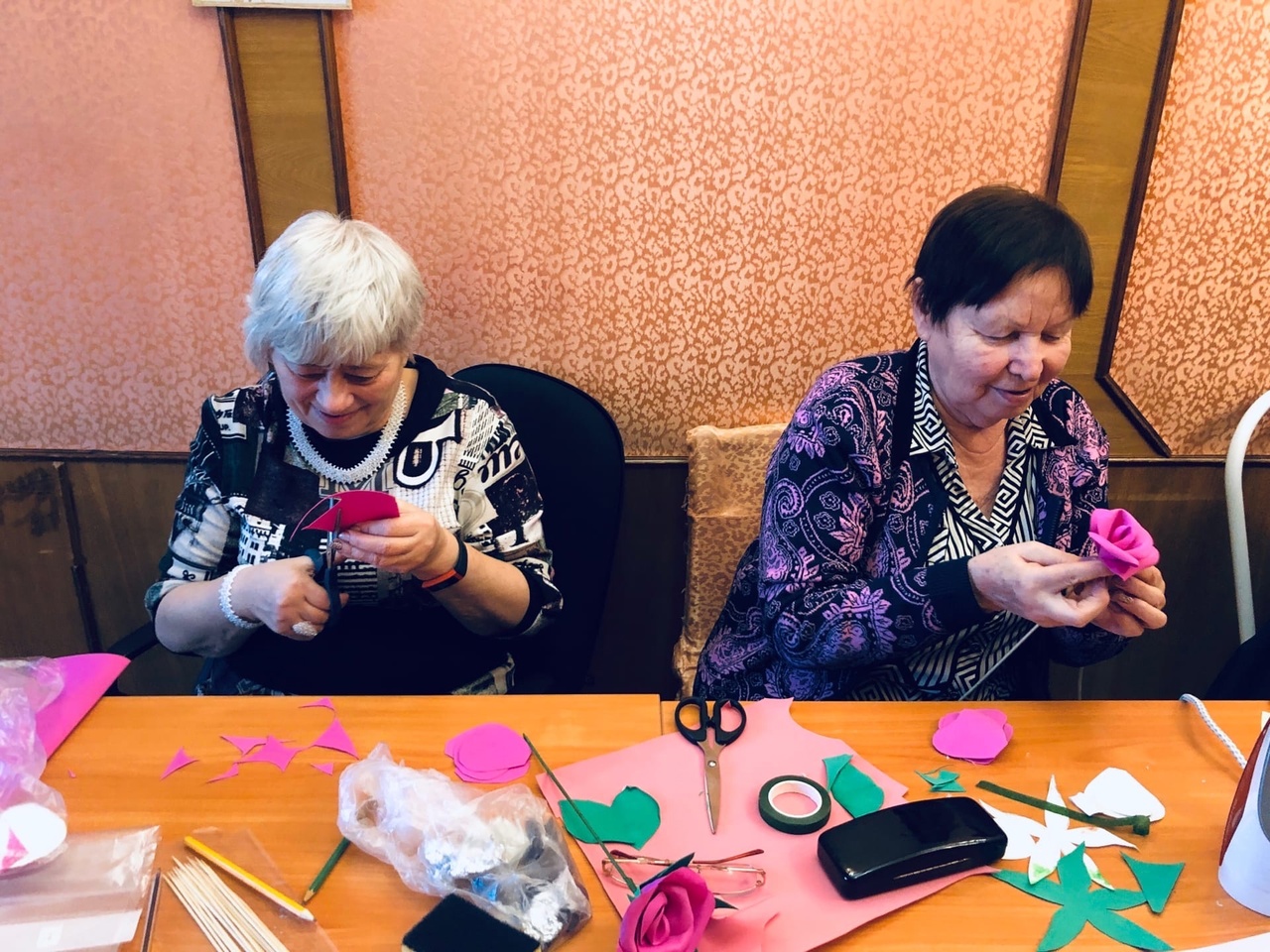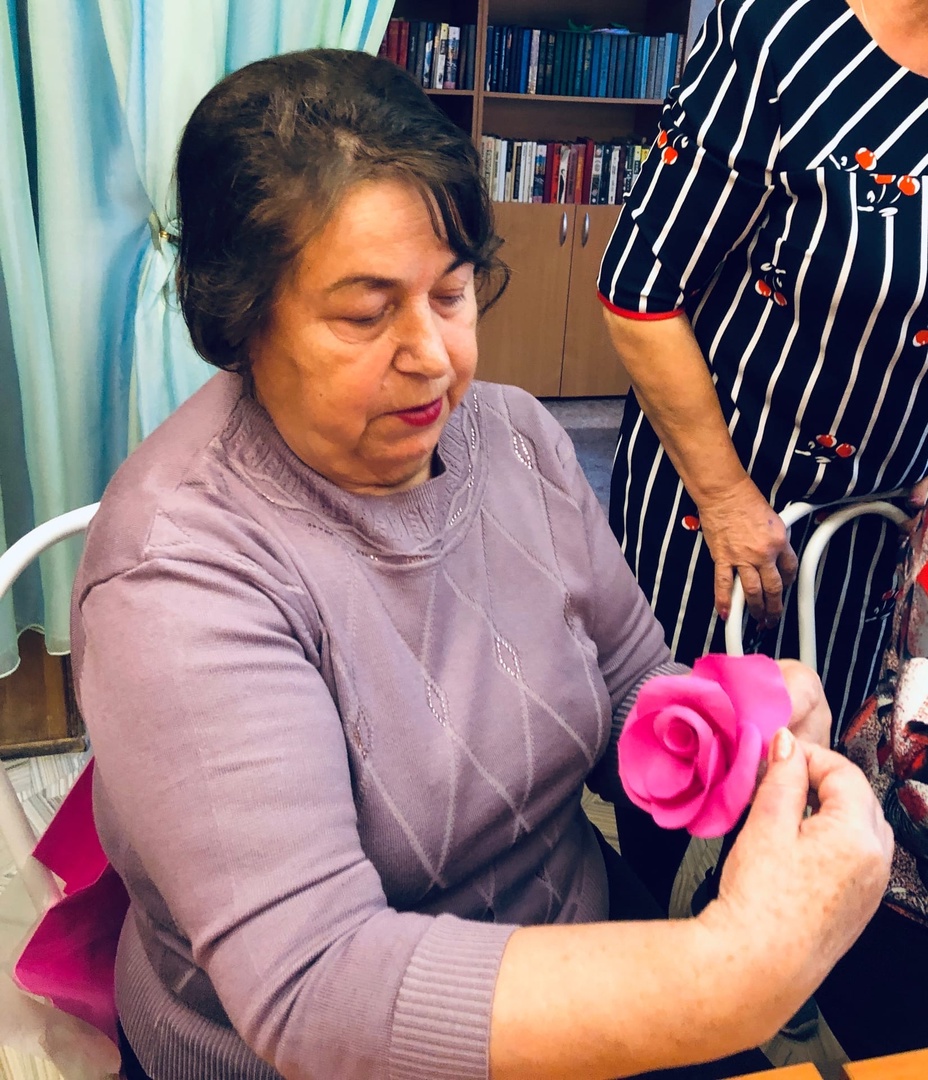 Так, 28 октября «серебряный» волонтер Лидия Шакина провела для отдыхающих мастер-класс по изготовлению роз из фоамирана.