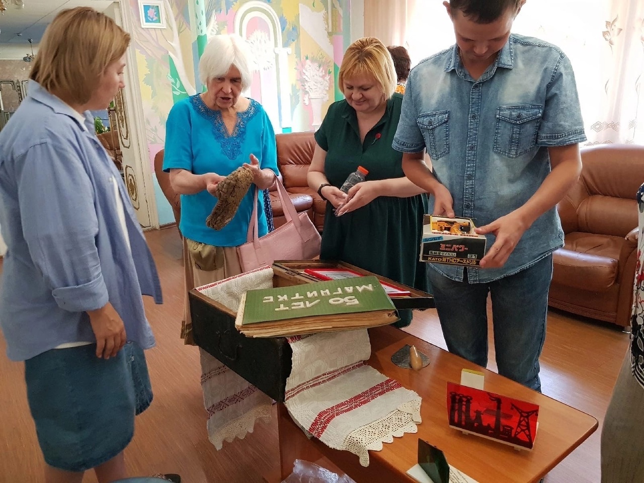 С большим интересом отдыхающие слушали рассказ Татьяны Викторовны и смотрели фильм о замечательных людях, строивших легендарную Магнитку, а также рассматривали экспонаты из «музейного чемодана».