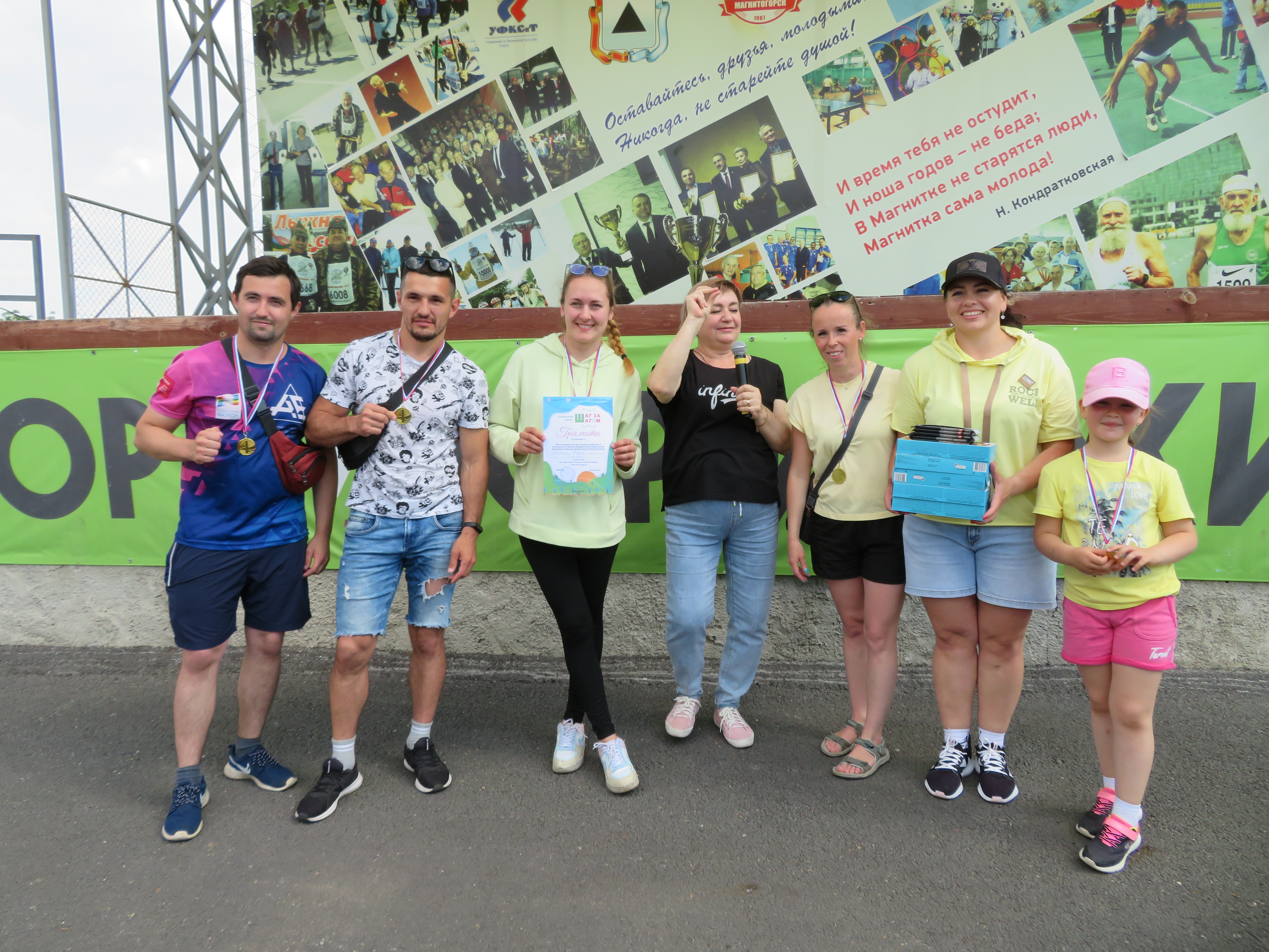 Каждая команда на время проходила 15 этапов на площадке возле сцены, где выполняли различные задания: собирали пазл, катались на самокате, передавали мяч над головой, прыгали через скакалку , качали пресс, бегали с обручем, играли в дартс, забивали мяч в ворота, вели мяч руками и ногами, набивали мяч теннисной ракеткой и т.д. Все команды успешно справились с заданиями и завершили этапы вовремя. Пока подводились результаты соревнований, перед участниками и зрителями выступил солист Огурков Юрий из МУ "РЦ ОВЗ" г. Магнитогорска. Также порадовало сольное выступление культорганизатора Зерняка Юрия Теодоровича с песнями и экспромт танцевального коллектива от МПНИ, ребята подарили всем заряд бодрости и отличного настроения.