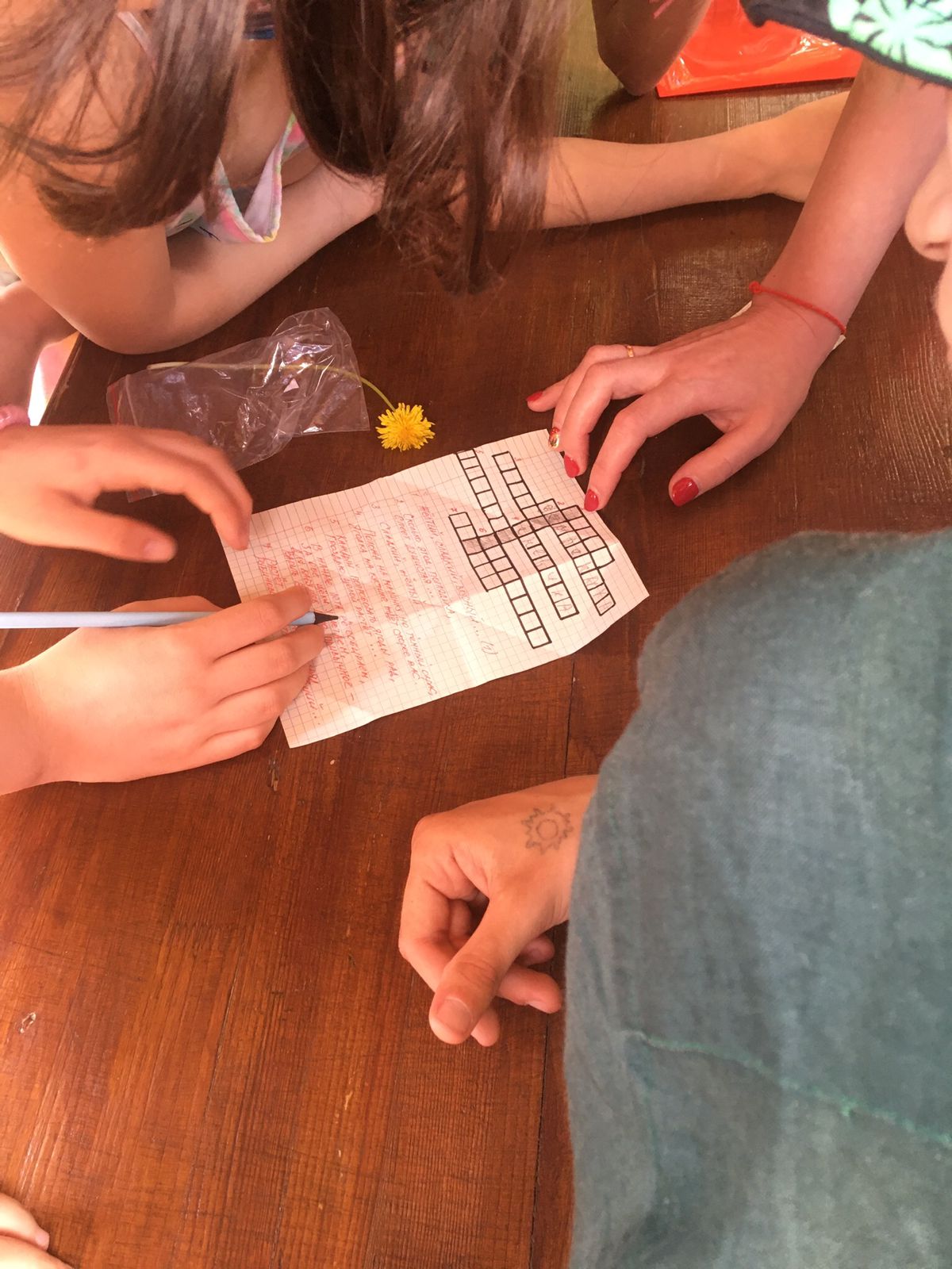 А потом все решали кроссворды и примеры, искали спрятанную картинку, читали послание, написанное вверх тормашками, и вспоминали детскую считалку про радугу.