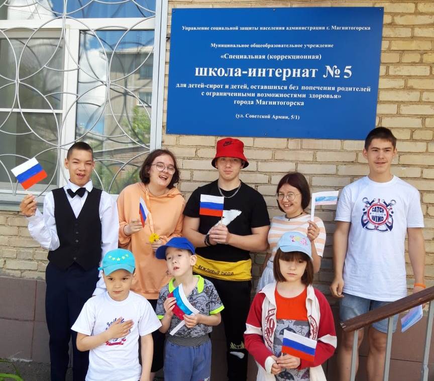 В школе-интернате прошла акция «Поздравление жителей микрорайона с Днем России». Ребята вручали прохожим флажки, сделанные своими руками.