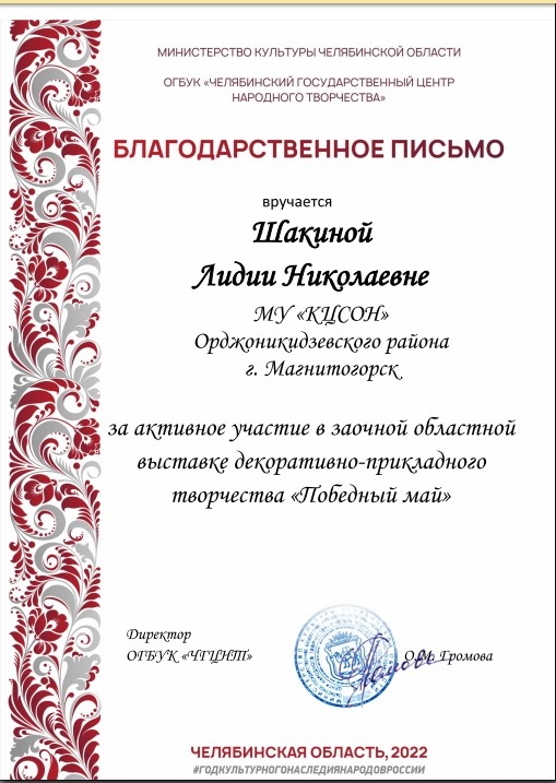 Очередное пополнение копилки достижений получателей социальных услуг МУ «КЦСОН» Орджоникидзевского района