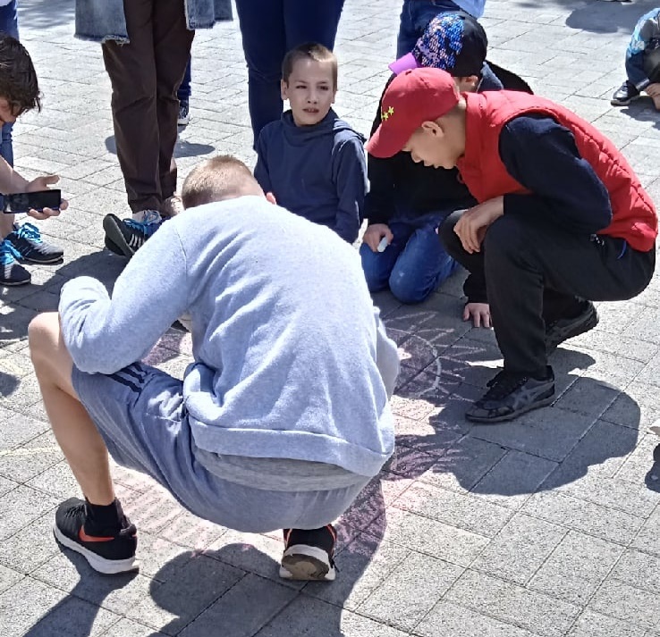 Сегодня тоже хорошо повеселились: принимали участие и в «Весёлых стартах», и в викторине, и в конкурсе рисунков на асфальте.