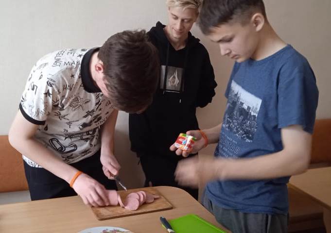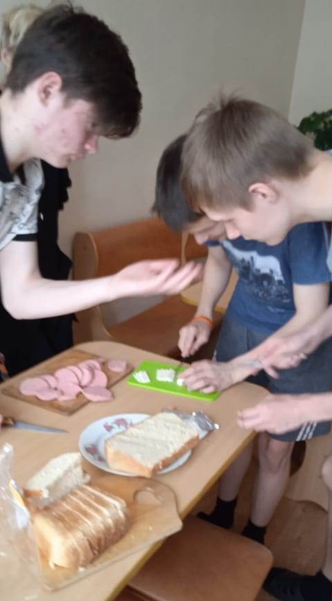 Затем мальчишки сами приготовили бутерброды для перекуса.