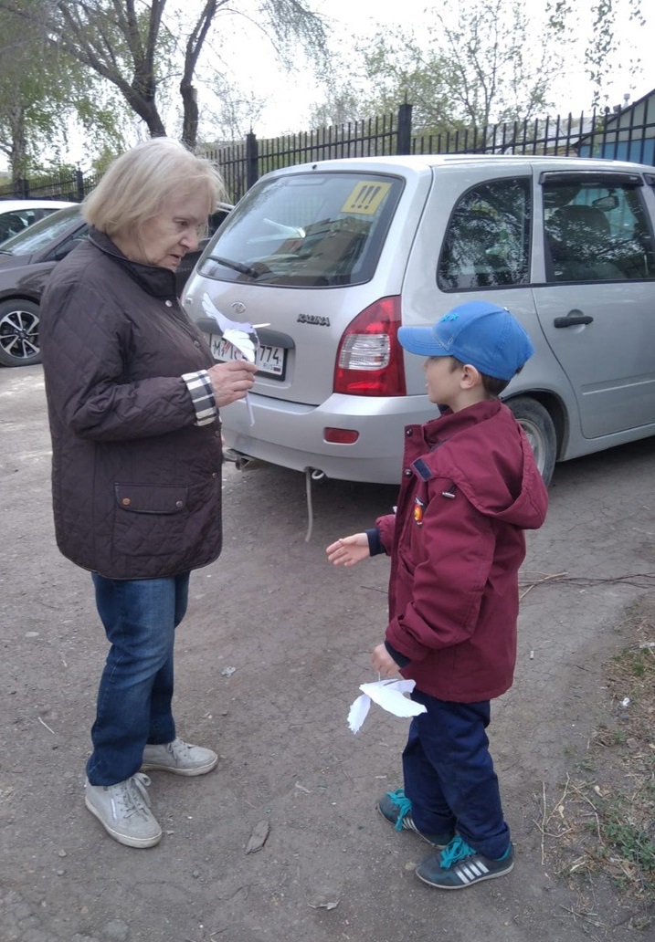 Проникнувшись темой Великой победы, ребята с огромным желанием захотели поздравить жителей нашего города. Воспитанники рисовали праздничные открытки для размещения их на досках объявлений у жилых домов и изготавливали белых голубей для вручения жителям района.