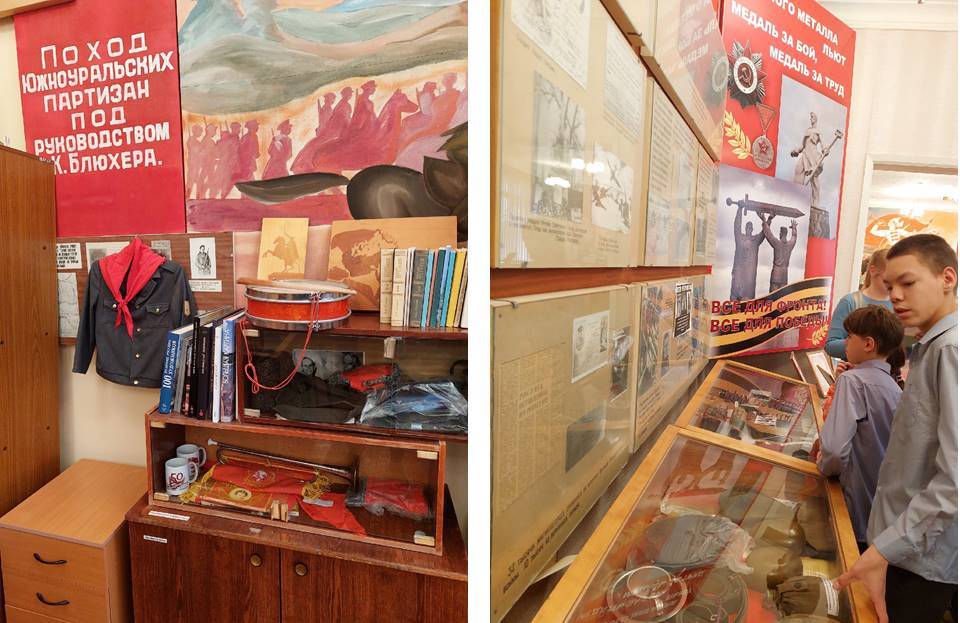 В школьном уголке музея поговорили о пионерах и их атрибутике, послушали историю школы-интерната «Семья».
