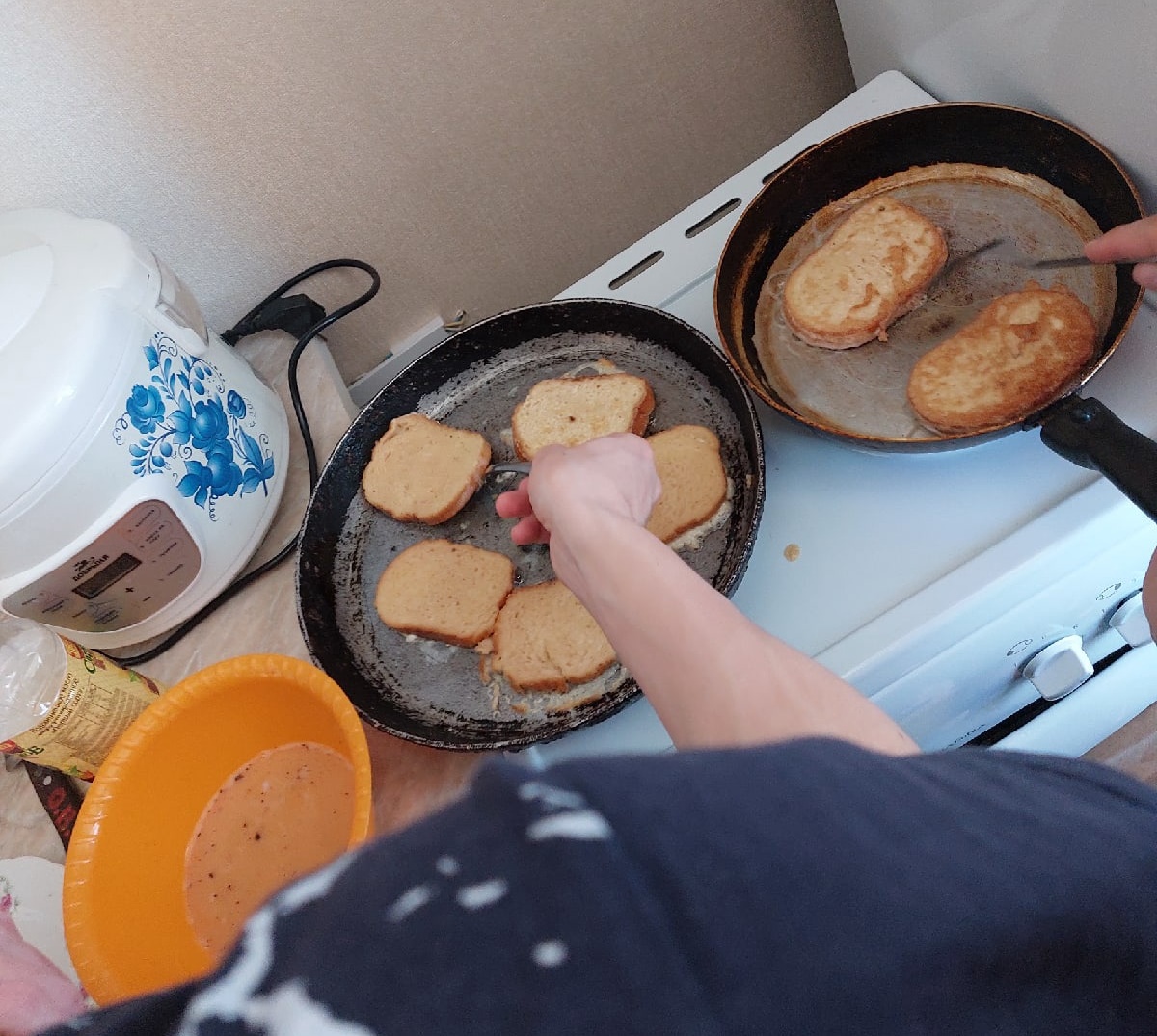 На завтрак многие люди используют полуфабрикаты, но они не всегда могут быть свежими и полезными, поэтому самые простые блюда можно приготовить из яиц. Подростки познакомились с рядом таких блюд и выбрали гренки с яйцом, получилось очень вкусно.