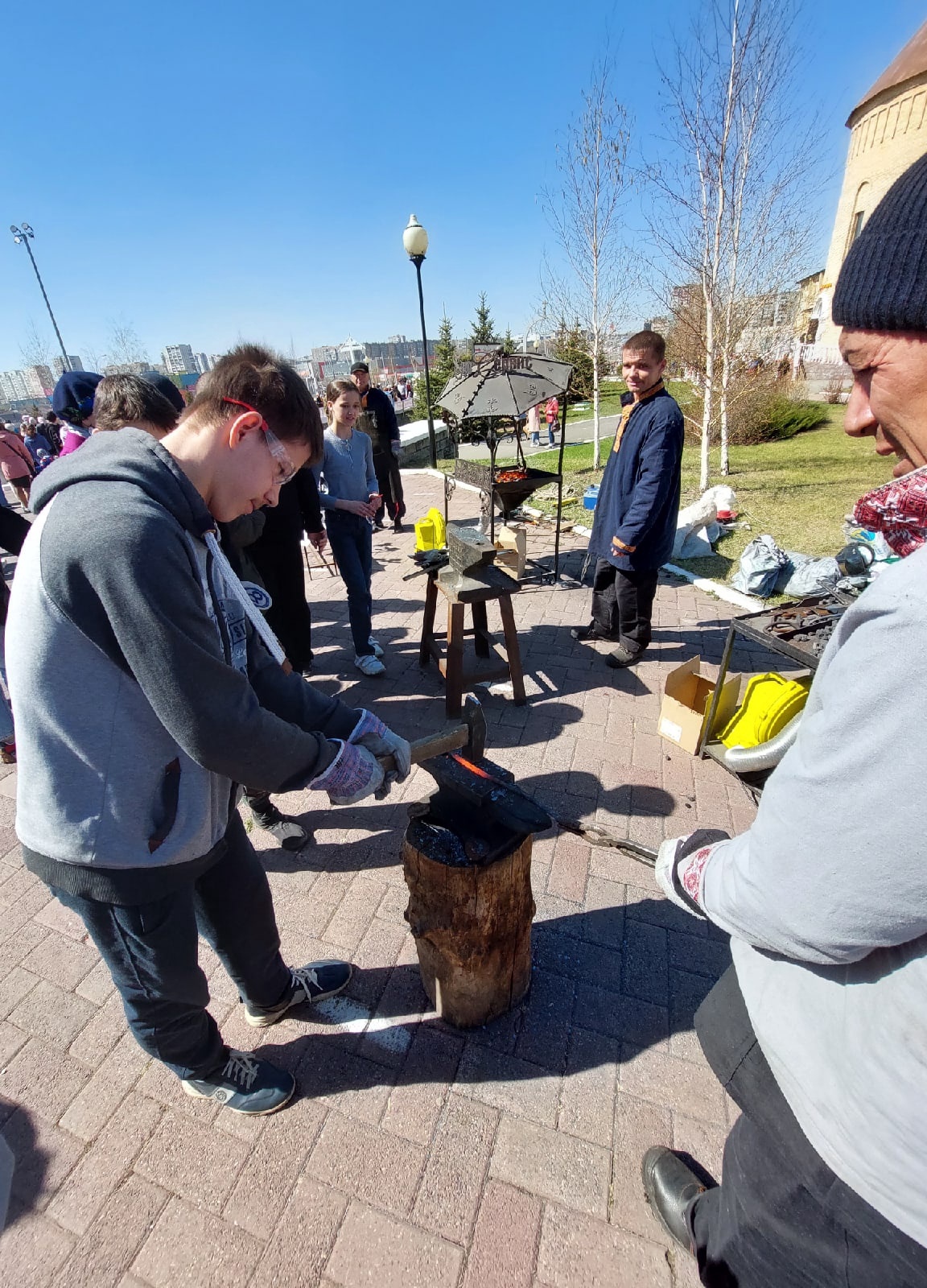 Наши воспитанники с огромным интересом участвовали в различных состязаниях: сматывали верёвку, ковали железо, катали яйца и многое другое.