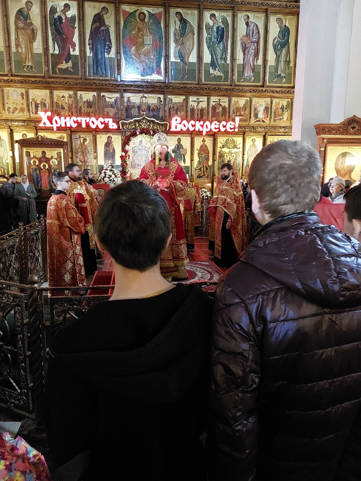 В День Светлого Христова Воскресенья – Пасхи воспитанникам МОУ «С(К)ШИ № 5» посчастливилось побывать на Божественной литургии в храме Вознесения.
