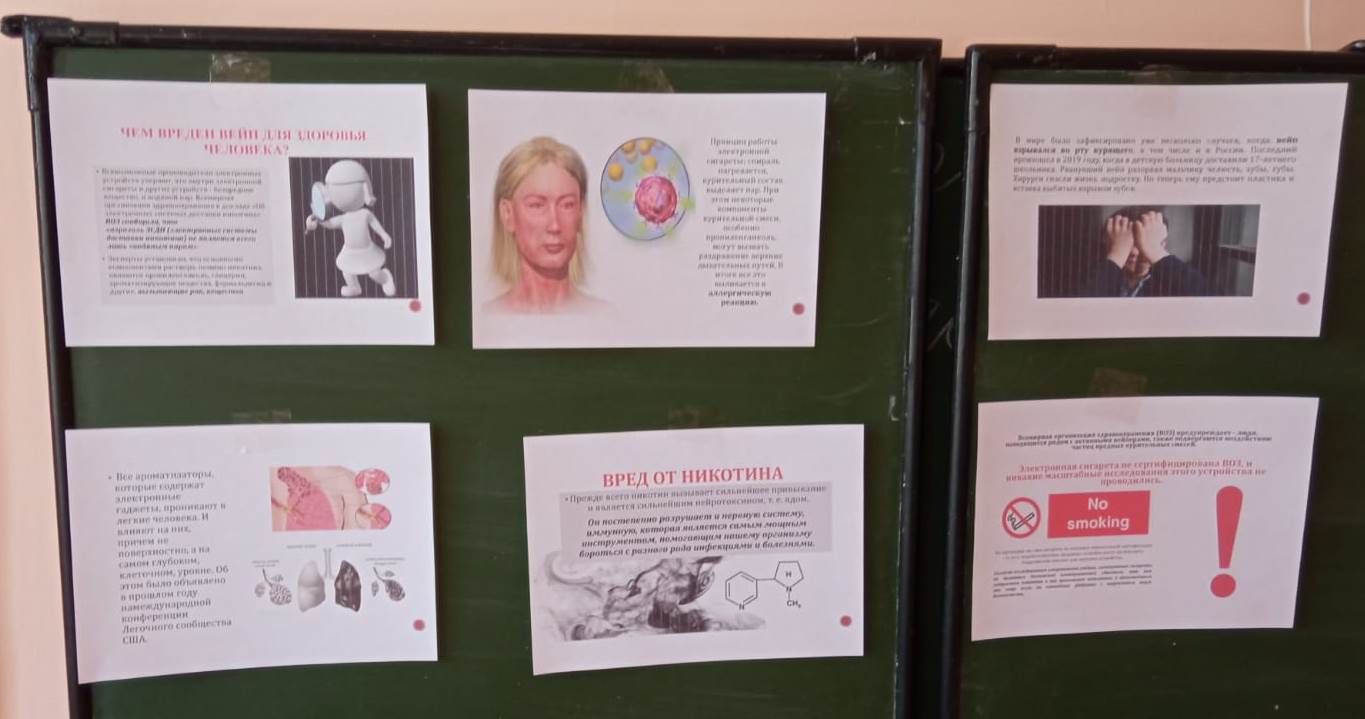На занятии воспитанники рассмотрели состав жидкостей для заправки вейпов, узнали о том, кому выгодно поддерживать миф о «безвредности» электронных сигарет. Также ребята имели возможность увидеть, как проявляются аллергические реакции на формальдегид на внешности человека; узнали, что пропиленгликоль, диэтиленгликоль – небезопасные вещества, которые входят в состав жидкостей для заправки электронных гаджетов.