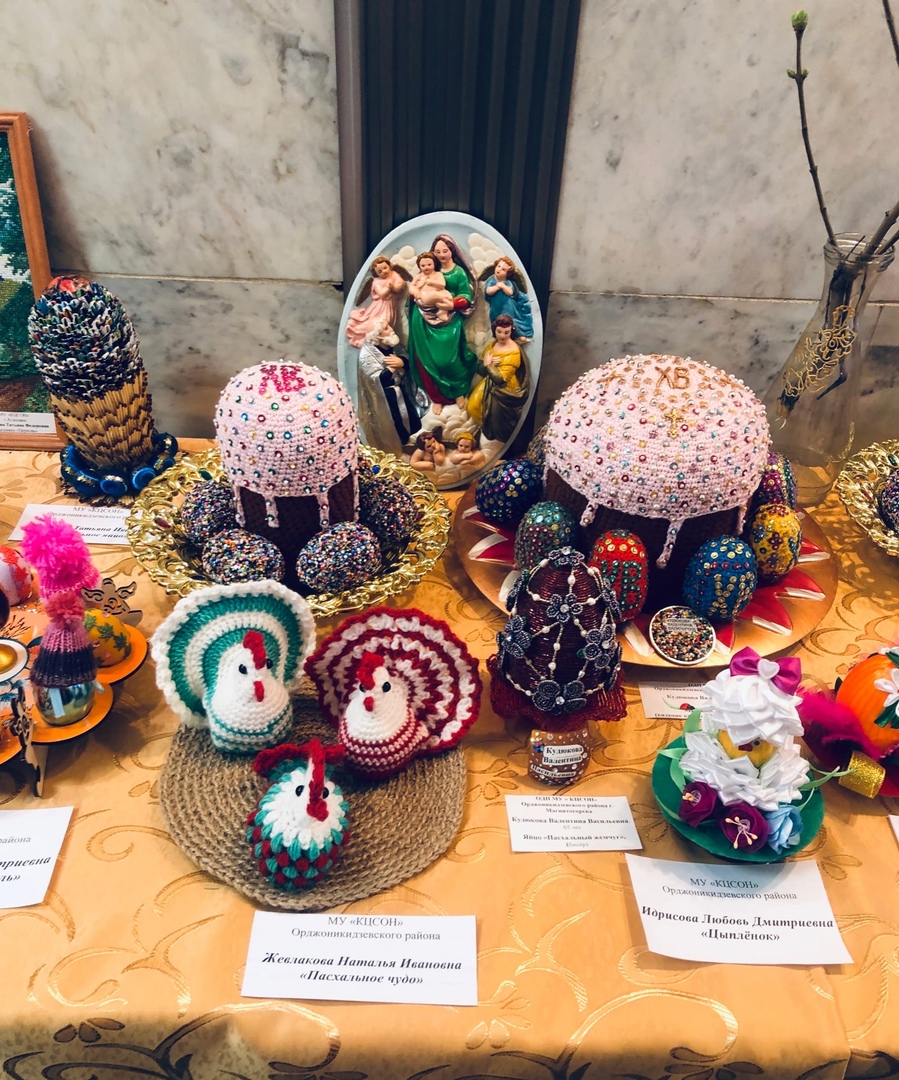 21 апреля на базе отделения дневного пребывания Орджоникидзевского района состоялась выставка-конкурс «Пасхальный сувенир», в которой приняли участие получатели социальных услуг МУ «Реабилитационный центр для людей с ограниченными возможностями здоровья», МУ «КЦСОН» Орджоникидзевского района, представители Всероссийского общества инвалидов Орджоникидзевского района. В этом году конкурс расширил границы и к нему присоединились получатели социальных услуг МУ «Комплексный центр» Агаповского района.
