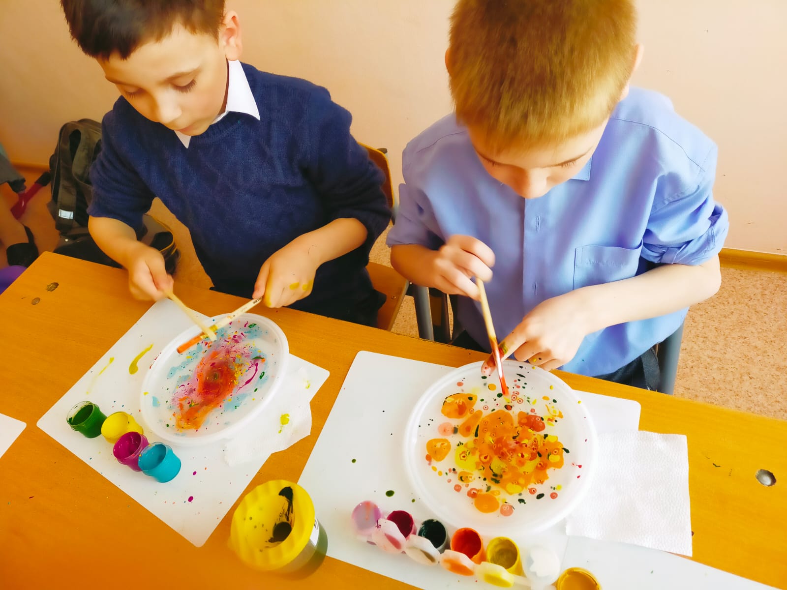 На внеурочной деятельности ученики 1-4 класса стали участниками мастер-класса «Нетрадиционная техника рисования «Эбру». В переводе с персидского языка «Эбру» — это «облачный», «волнообразный».