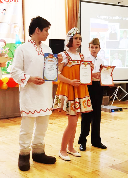 В школе-интернате дети живут семьями. В конкурсе участвовали семь семей. Конкурсанты на плакатах представили Россию как страну с многовековой историей, богатым культурным наследием, щедрой природой. Демонстрация плакатов сопровождалась выступлениями самодеятельных артистов с песнями, танцами, чтением стихов. Через поэзию, песни, прозу ребята подчеркнули главные черты народов нашей великой страны -- трудолюбие, гостеприимность, мужественность, героизм, патриотизм и миролюбие. Для этого они использовали рисунки, аппликации, макеты. Все работы отличались самобытностью, оригинальностью и уникальностью.