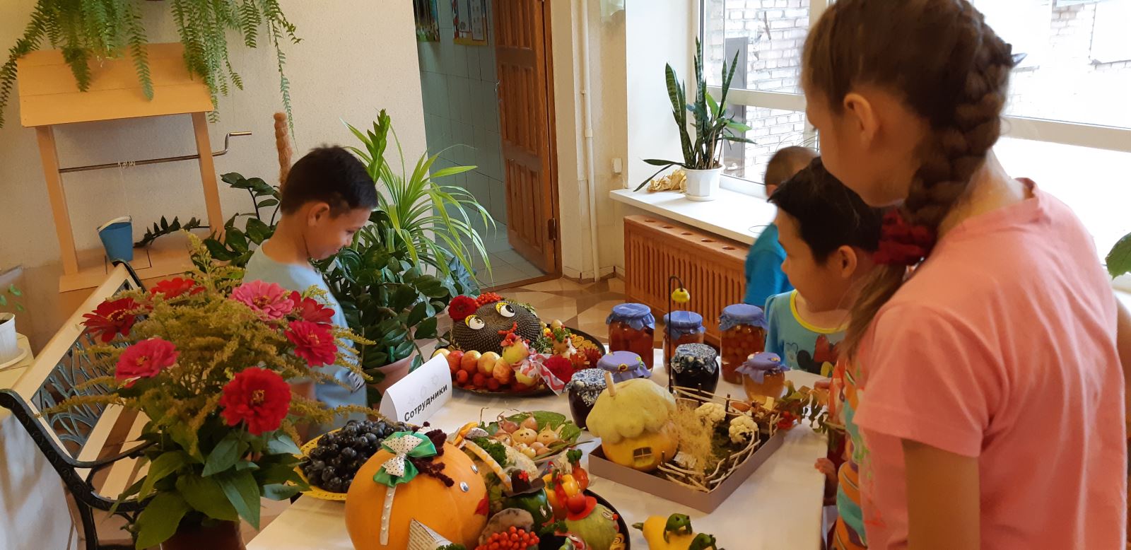 Осень не прошла незаметно и в нашем центре. 20.09.2018 г. в Зимнем саду учреждения прошла выставка осенних поделок «Дары осени». Дети вместе с воспитателями изготовили оригинальные поделки из цветов, овощей и фруктов. Участие в выставке также приняли сотрудники центра. Все поделки получились очень красочными, яркими и уникальными.