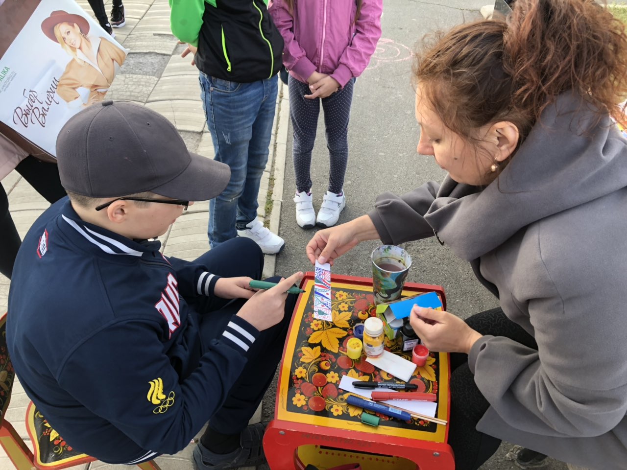 Центр социальной помощи семье и детям совместно с Правобережным центром дополнительного образования представляли площадку современной авторской росписи, на которой ребята своими руками изготавливали закладку для книги.