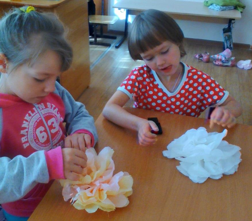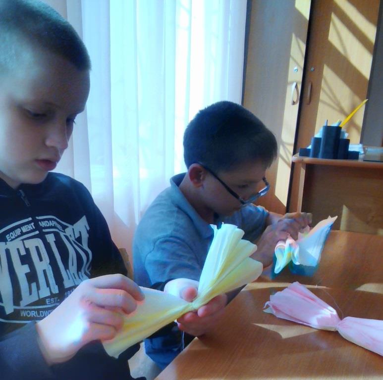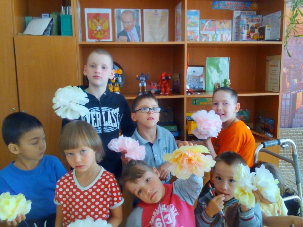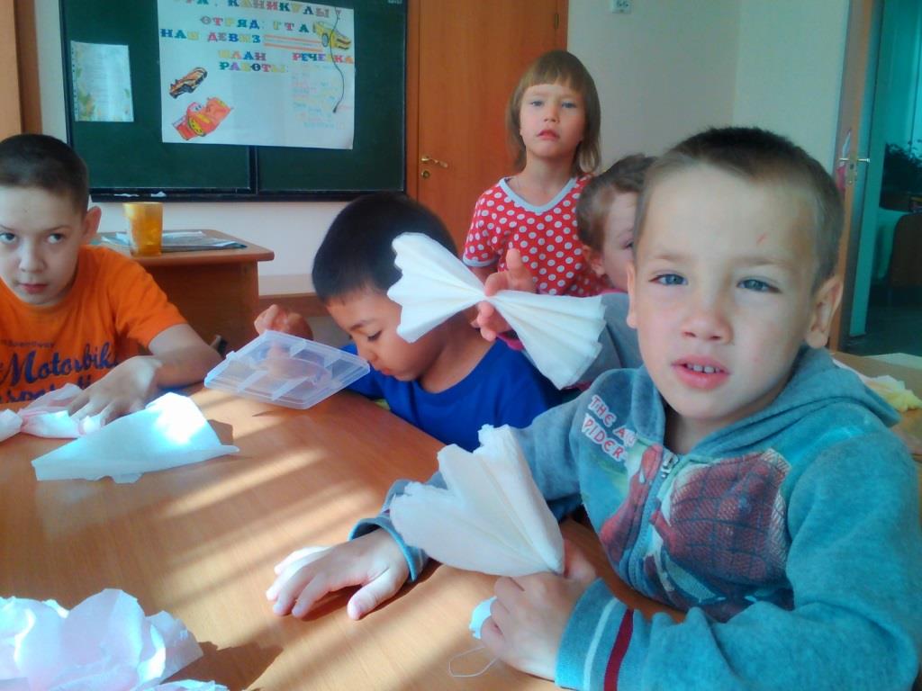 В субботу, 18 августа, младшие дети школы-интерната № 5 были очень заняты: они занимались изготовлением цветов из салфеток. Очень красивыми получились пионы. Особенно постарались Ангелина, Таня И., Максим З. Все ребята были довольны.