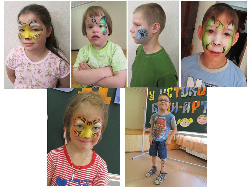 На линейке 27.06.2018 г. воспитанники школы-интерната № 5 познакомились с аквагримером Оксаной Ширяевой. Работает она быстро и профессионально. Все желающие смогли украсить себя рисунками на теле: на руках, на лице и даже на ногах. Мальчишки выбирали изображения птиц и животных, а девочки – сердечки, цветы, бабочки. А пока аквагример расписывали ребят, мы побеседовали об истории зарождения боди-арта, о его разных направлениях и применения его в современной жизни.
