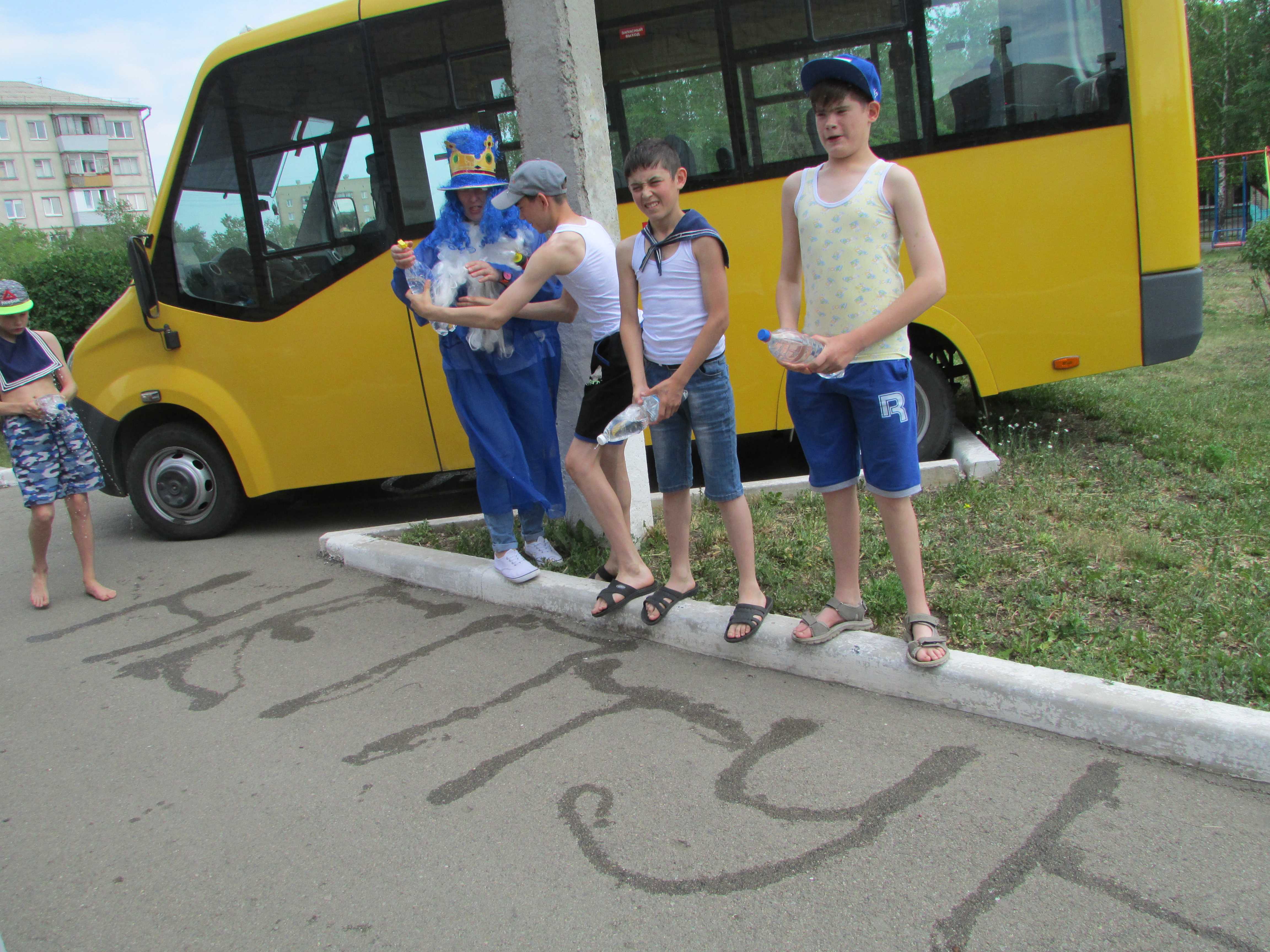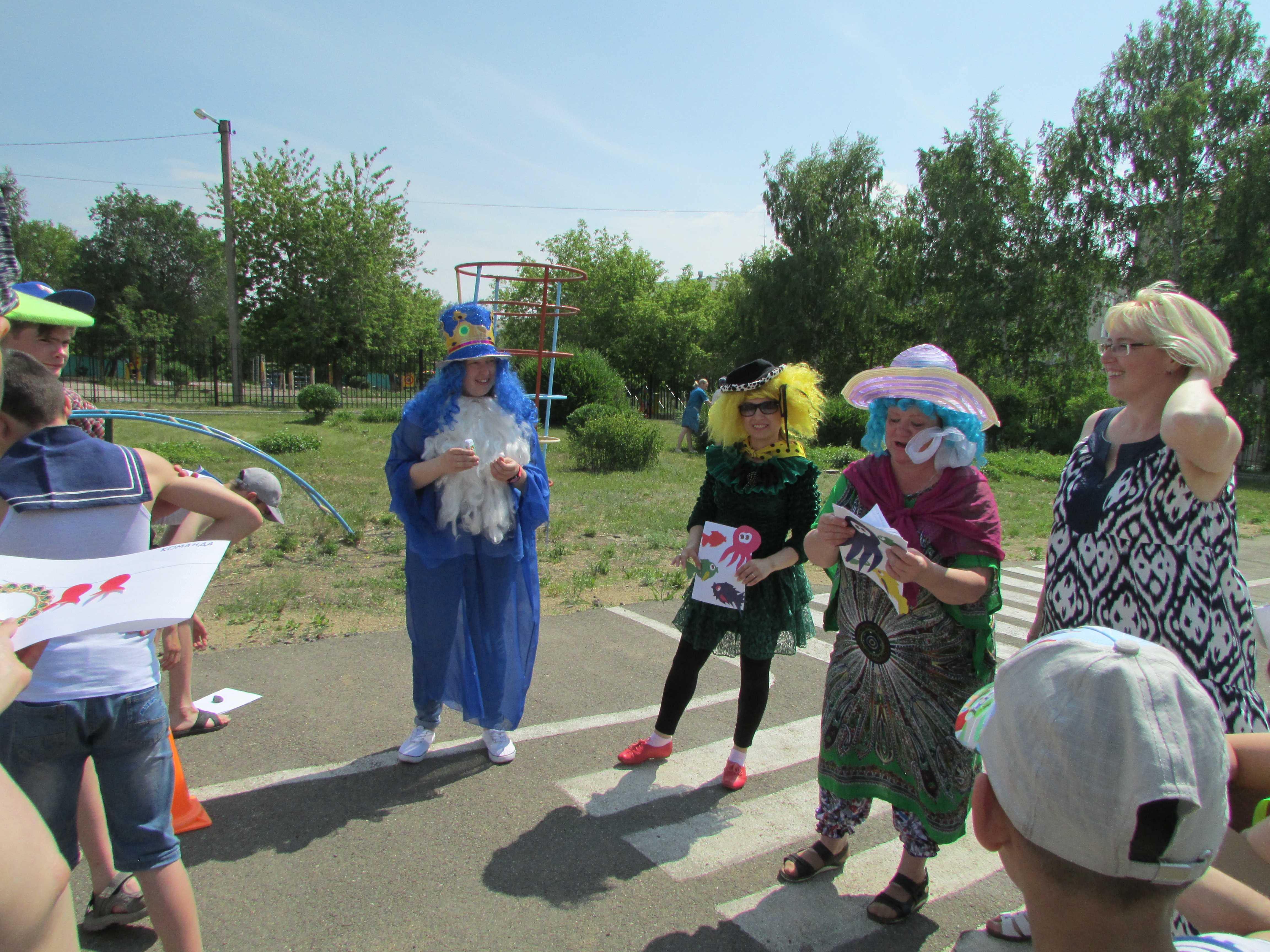 Наконец, пришло лето. Стоит жара. Кто-то прячется в тени деревьев, кто-то спасается в тени дома, а в школе-интернате № 5 решили провести День Нептуна – день праздника Солнца и Воды. Роль Морского царя сыграла воспитатель О.П. Хрипунова, а медуз- горгон – воспитатели Е.В.Михеева и Ю.З.Кузьмина. А ребята были моряками, водяными, русалками и рыбками. Веселые конкурсы, конечно же, были связаны с водой - перенести, облить, перелить. Музыкальный фон создавал наш маленький Игореша, который бренчал на гитаре, сидя с Верочкой в тенёчке на одеяле.