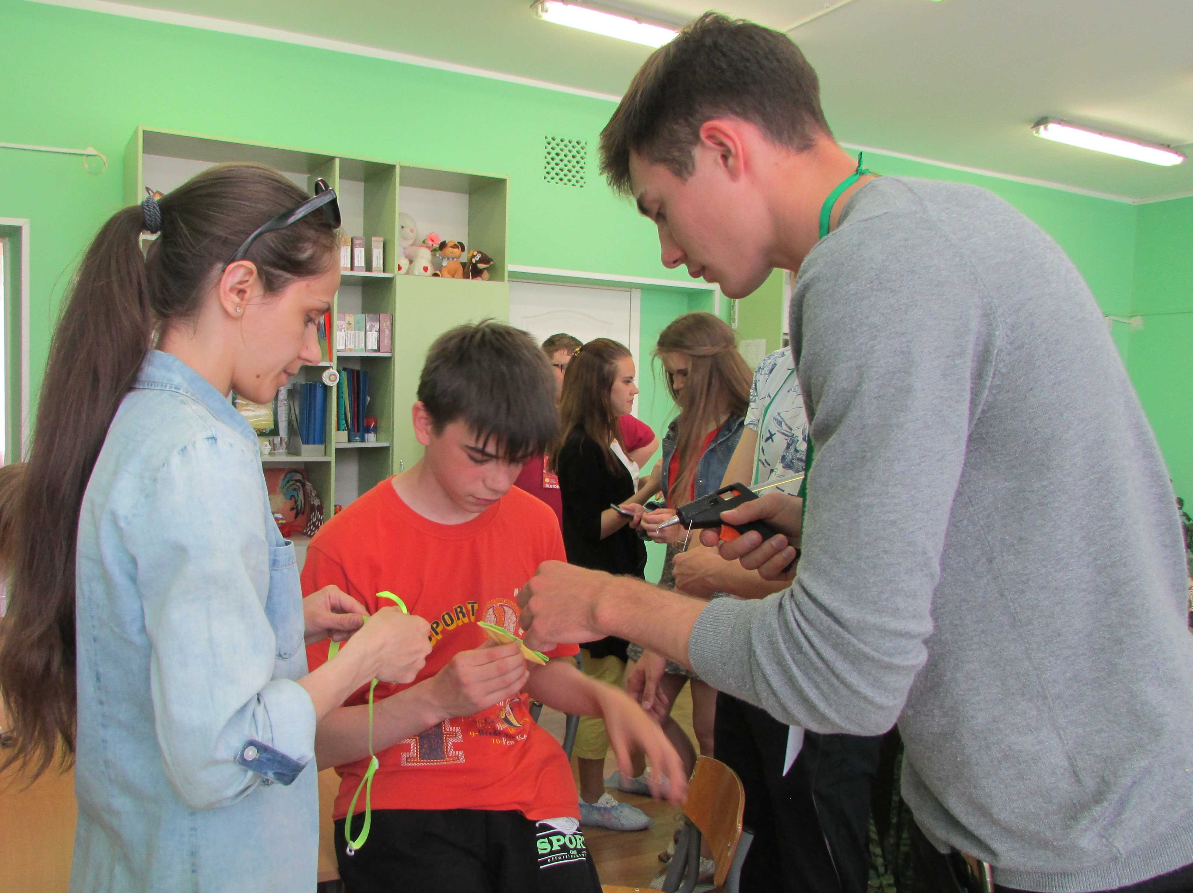 Вечером вместе с благотворительным фондом «Тепло рук» ребята изготовили на мастер-классе бабочки-галстуки на рубашки. Эти бабочки ребята планируют надевать для выступления на школьных и городских мероприятиях. А выступать они любят и умеют!