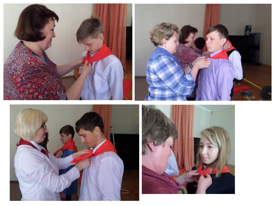 Все вместе спели песню «Вместе весело шагать». Настала и очередь спортсменов-медалистов. Андрей, Стас, Евгений, Илья, Егор также были приняты в пионеры, и им повязали красные галстуки. Эти ребята не раз выступали на городских и окружных соревнованиях.