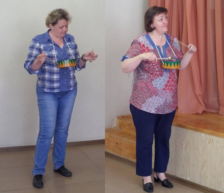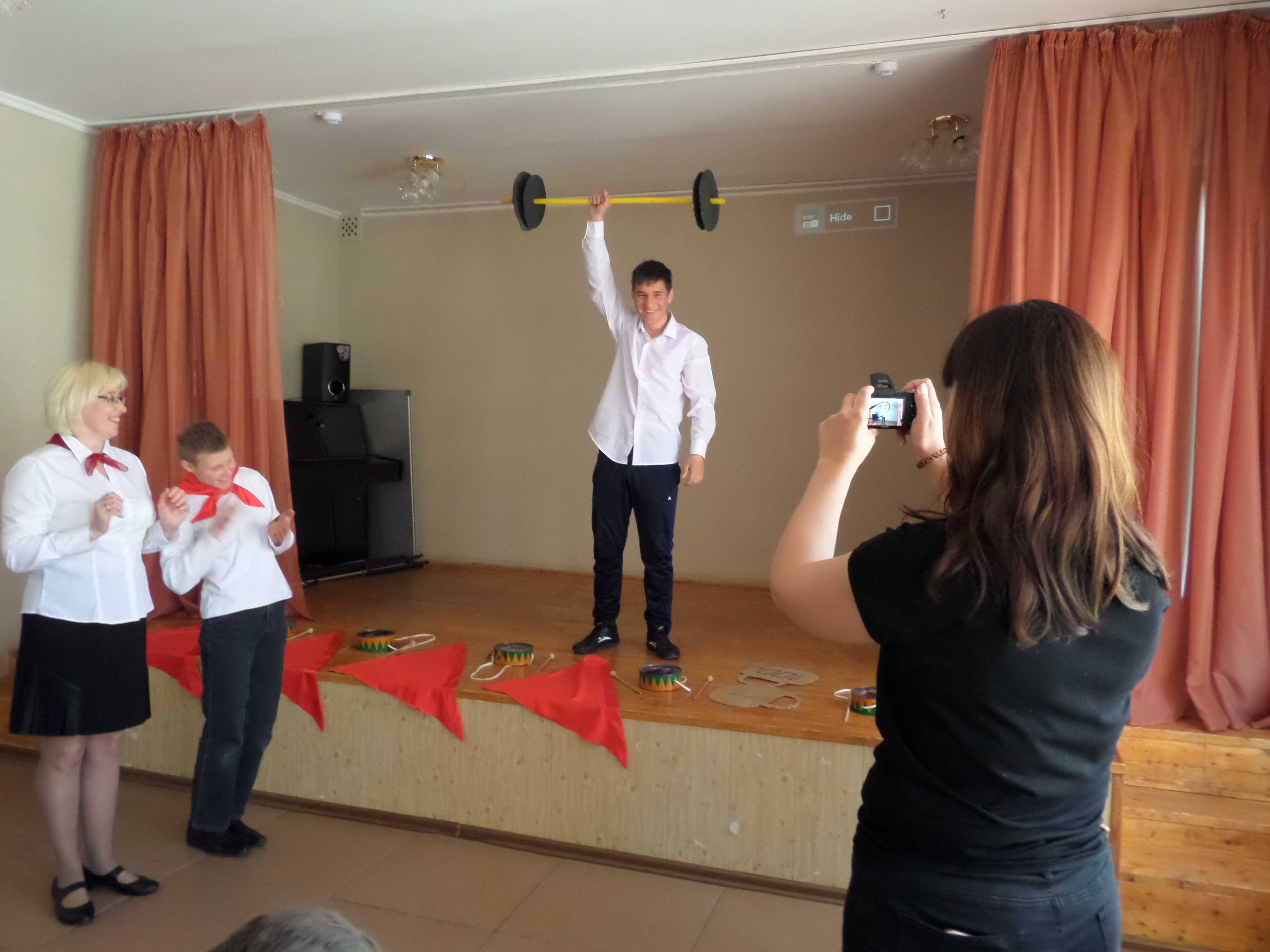 Взрослые, вспомнив свои юношеские годы, тоже отбили барабанную дробь (Ирина Александровна и Елена Леонидовна), а ещё все вместе спели песню «Взвейтесь кострами». Под эту песню, построившись в пионерский отряд, подростки-пионеры промаршировали по залу.