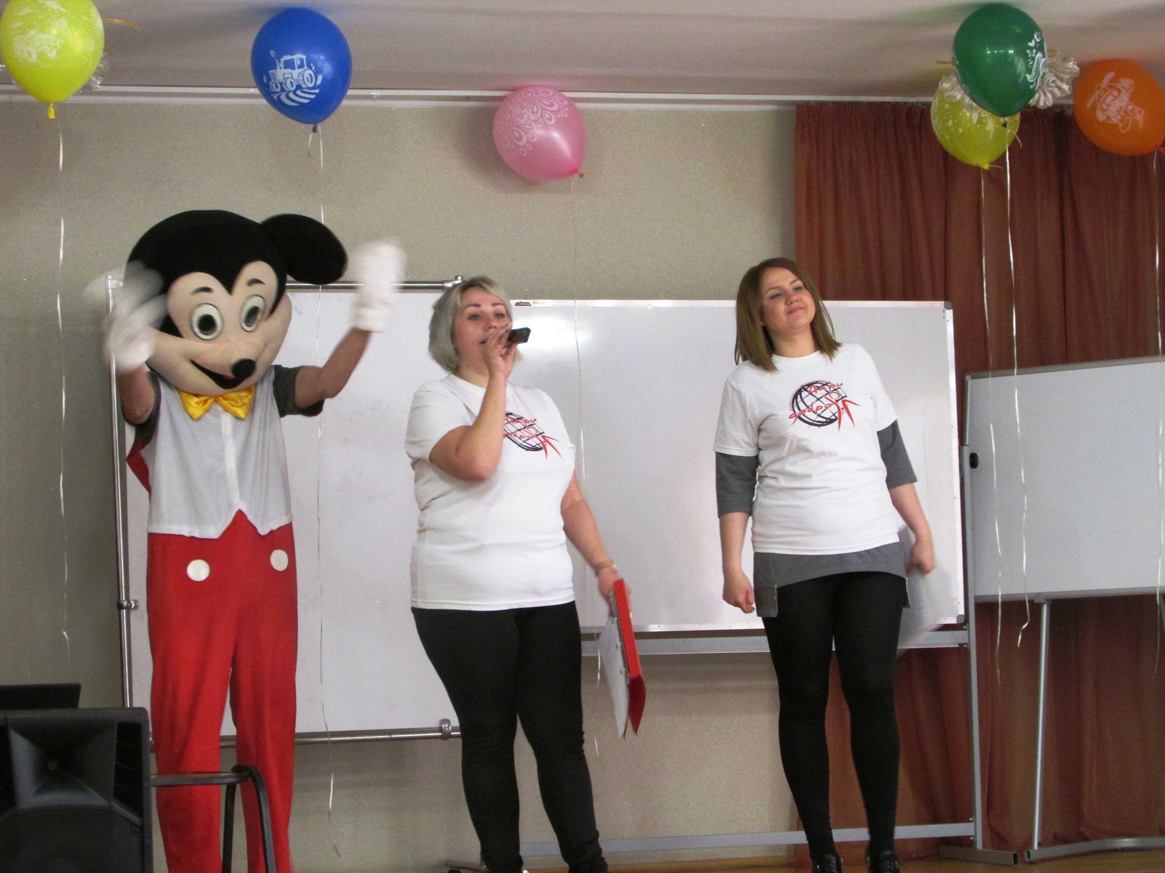 Встреча получилась яркой, радостной, полной сюрпризов. Ведущие праздничного шоу Смирнова Екатерина, Хусаинова Елена и Горбачева Екатерина быстро включили ребят 5–15 лет в игру–путешествие по станциям «Танцевальная», «Спортивная», «Подарочная». Конкурсы на каждой станции сопровождались современной танцевальной музыкой. Вместе с ребятами танцевал и аниматор в костюме Микки Мауса.