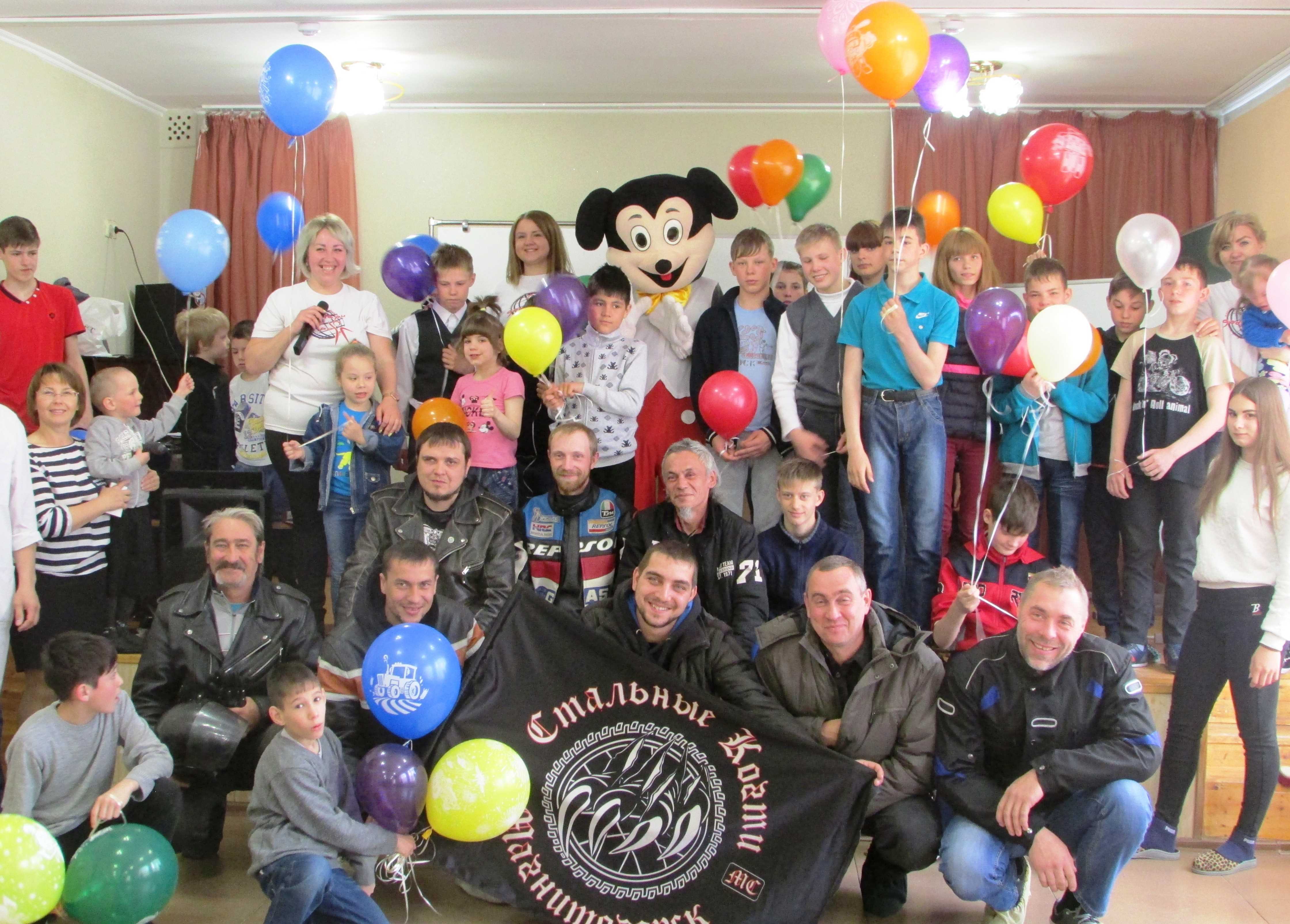 Следующим сюрпризом стало появление на празднике в честь Дня защиты детей взрослых друзей – членов Магнитогорского байк-клуба «Стальные когти», под руководством президента мотоклуба Александра Ворона. Группа «крутых байков» с интересом присутствовала на праздничном шоу МБФ «Дари добро» в актовом зале школы-интерната, знакомилась с ребятами. В заключение праздника все ребята и взрослые были приглашены на мотопрогулку по территории школьного двора.