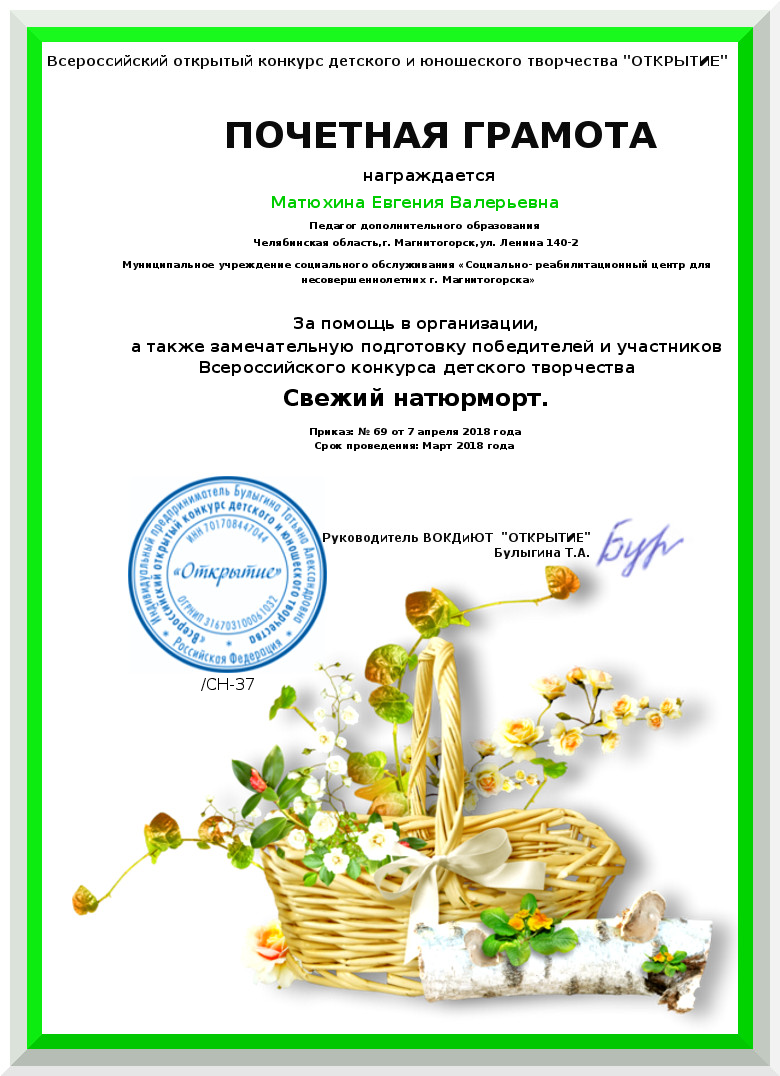 Ребята, проходящие курс социальной реабилитации в МУСО «Социально-реабилитационный центр для несовершеннолетних города Магнитогорска», заняли первое место во Всероссийском открытом конкурсе детского и юношеского творчества «Открытие».