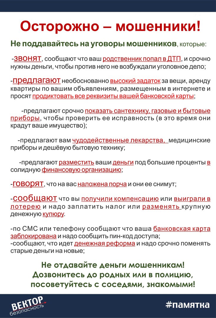Не отдавайте деньги мошенникам! Дозвонитесь до родных или в полицию, посоветуйтесь с соседями, знакомыми!