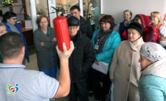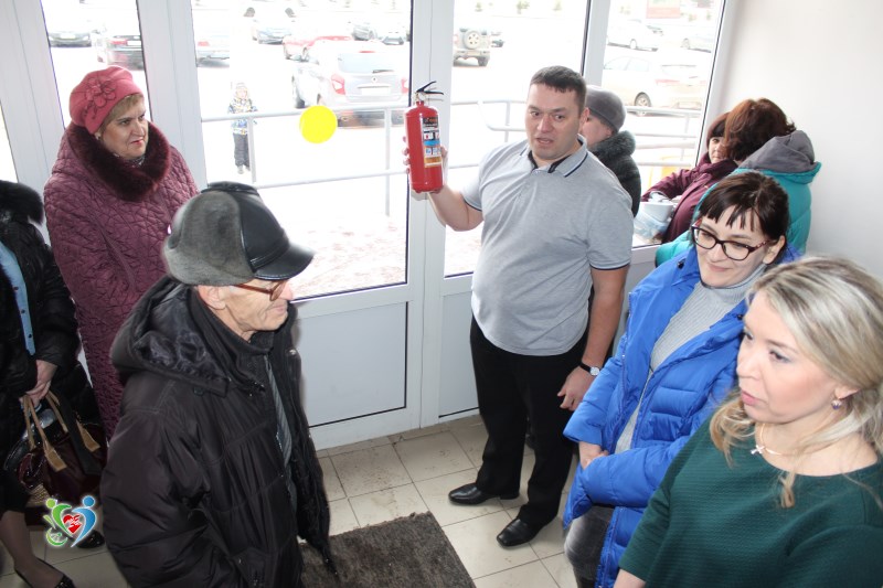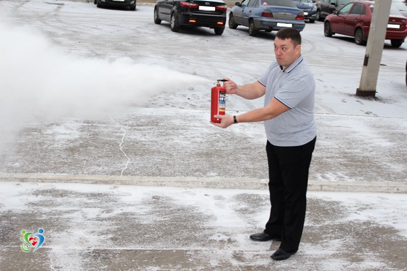 Стоит отметить, что тревога о начинающемся «пожаре» была совершенно неожиданной, но это не помешало бдительным сотрудникам в кратчайшее время организовать эвакуацию посетителей и всего персонала из здания учреждения. А заместитель директора по АХЧ Максим Ручушкин провёл практикум по обращению с огнетушителем.