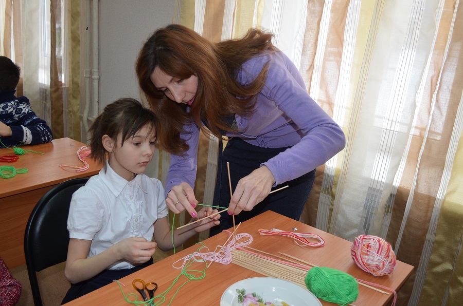 Само слово «Ма́ндала» в переводе с санскрита означает «круг» или "центр". Техника «мандала-терапии» позволяет снять эмоциональную напряженность, формирует установки позитивного отношения к себе, актуализирует чувства, активизирует бессознательное и развивает творческий потенциал. Создать собственный «центр» возможно красками, а можно и нитями. Для занятий в Центре была выбрала техника плетения. Загадав самые заветные желания, ребята приступили к работе. Выбирая тот или иной цвет нити для плетения, дети смогли передать свое состояние души на момент совершения этого действия. С каждым витком ниточки они приближались к душевному равновесию. Это очень полезное занятие для развития моторики рук, тренировки концентрации внимания. Данный вид арт-терапии способствовал формированию у детей эстетического восприятия цветовых сочетаний. Создавая свою личную мандалу, ребята создали индивидуальный символ, который отражает то, кем они являются. Все работы получились яркими, необычными и отличались друг от друга своей индивидуальностью, как и сами дети.