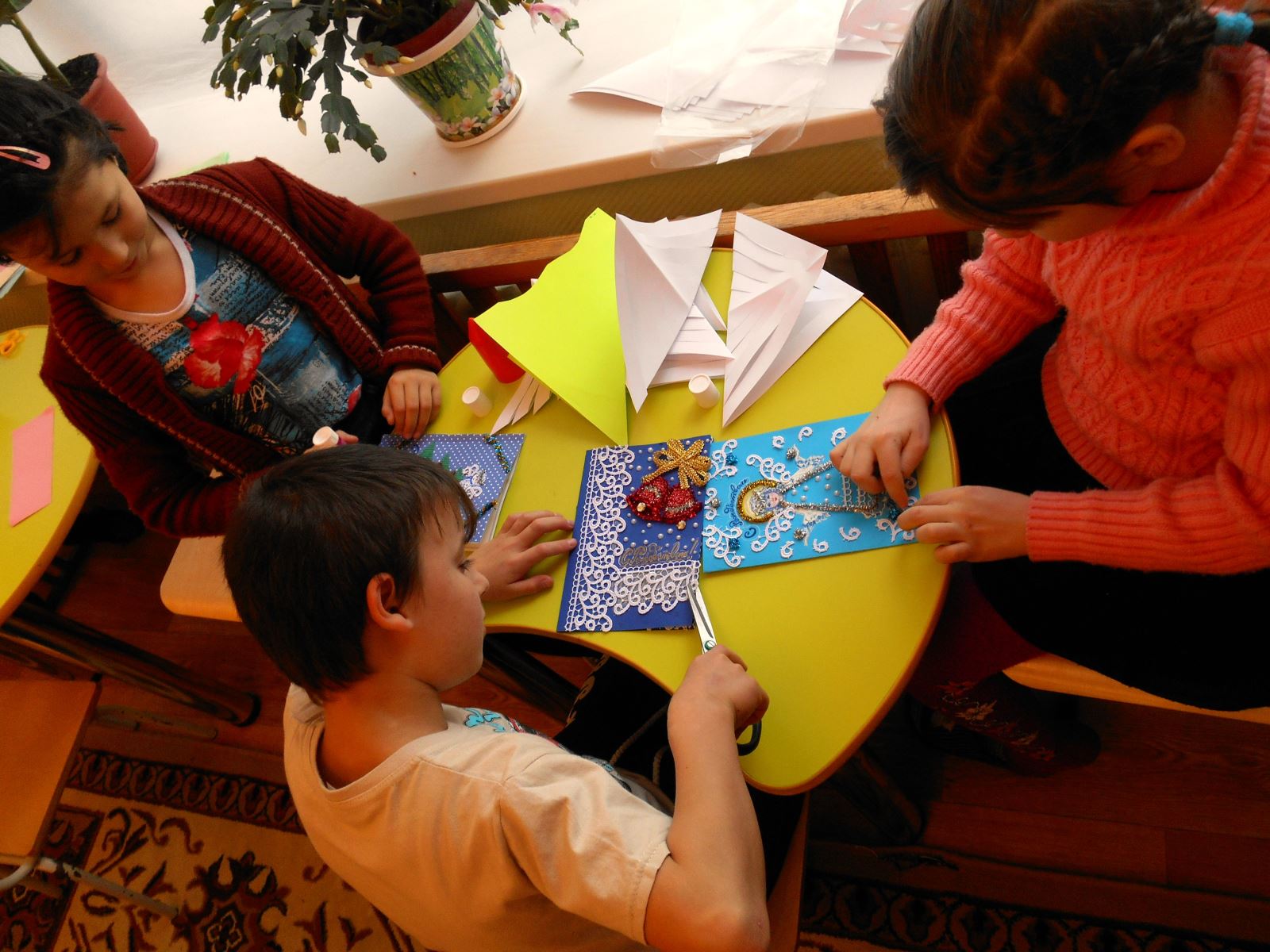 Накануне рождественских праздников ребята изготовили красивые поздравительные открытки как для своих родных, близких или будущих приемных родителей, так и для таких же детей, как и они сами, лишенных семьи и домашнего уюта. Малыши сделали декор для открыток из ниток, мишуры, гофрокартона, природного и бросового материала; ребята постарше декорировали открытки соломкой, бисером, лентами и кружевом. Рождественские поздравления у ребят получились очень трогательными, наполненными светом и радостью жизни; дети и подростки желали другим то, чего недоставало им самим.