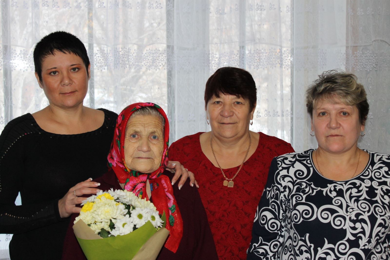 На дому Марию Сергеевну тепло приветствовали руководители управления социальной защиты населения администрации города и администрации Орджоникидзевского района, вручили ей букет цветов и подарки.