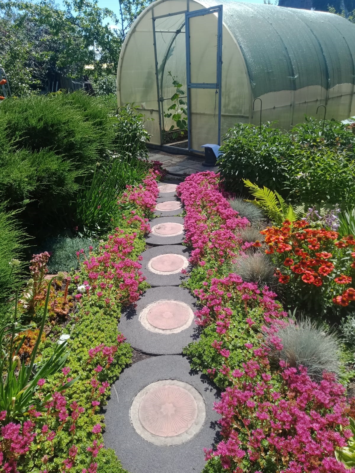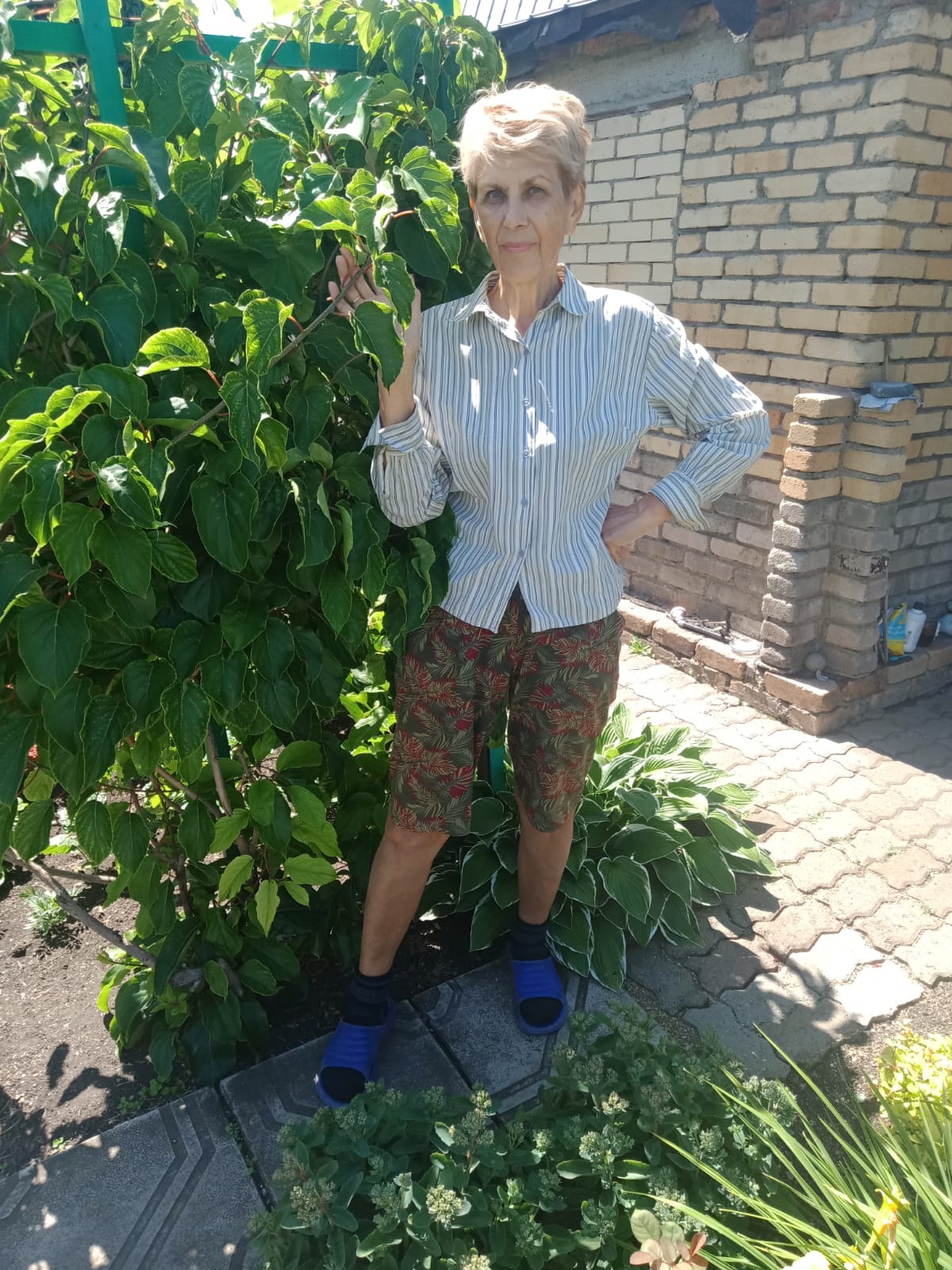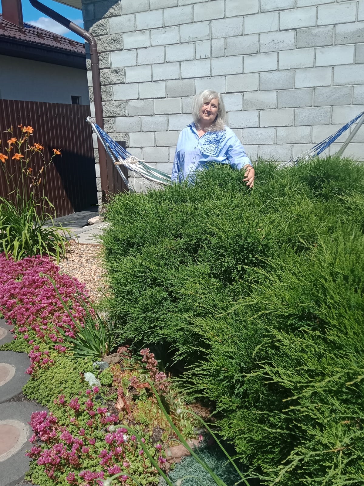 У Виктории Степановны в приоритете зона отдыха, где все предусмотрено для комфорта. Трудятся вместе с мужем Владимиром, супруги - и строители, и архитекторы, и дизайнеры. На участке много хвойных деревьев, виноград, можжевельник, очаровывают разные цветы.