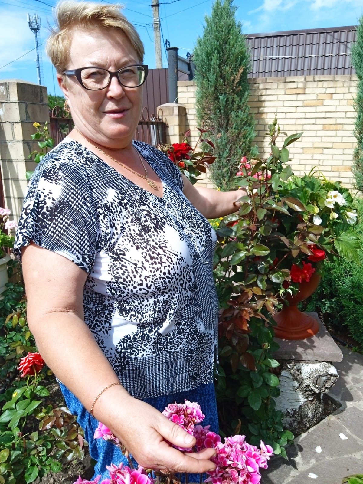 У Галины Ивановны особая гордость – придомовая территория частного дома, невозможно пройти мимо, чтобы не полюбоваться на красоту цветочных вазонов, 40 штук. Растут туя, гортензия, ассильдия, другие цветочные культуры.
