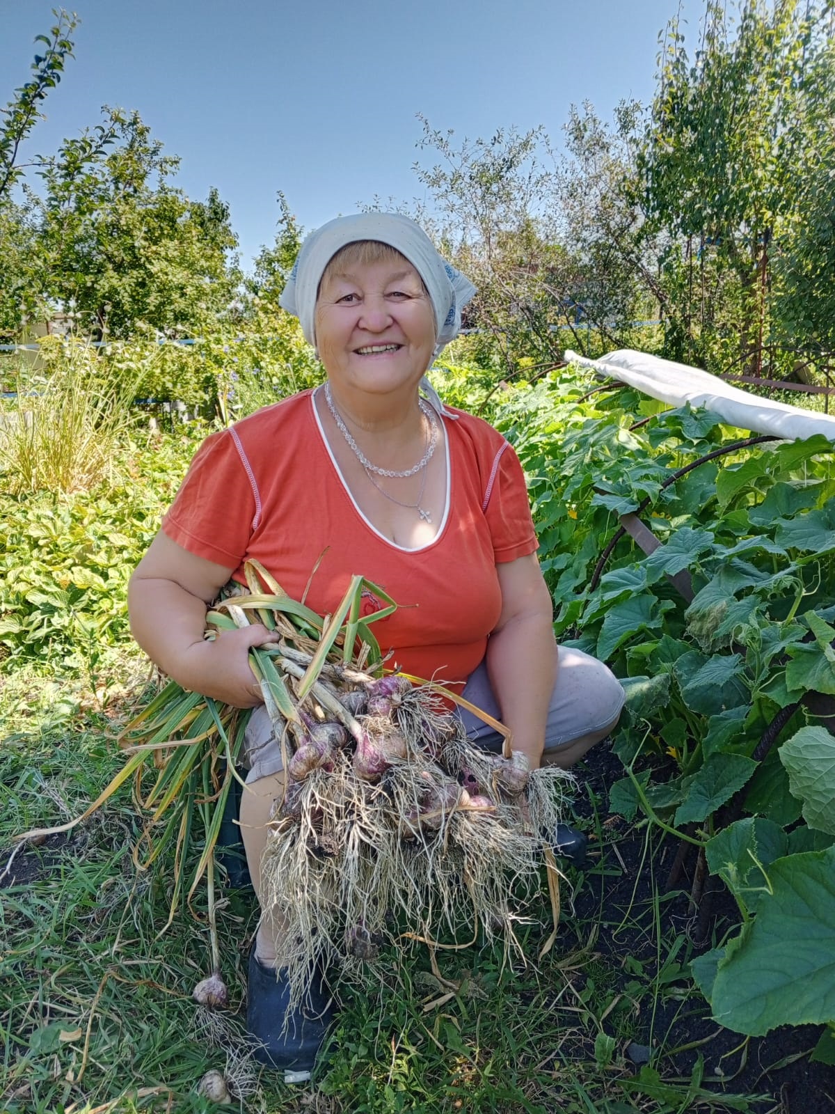 Гульфира Макарова очень довольна посадками редких сортов смородины, крыжовника. Хороший урожай нынче лука, чеснока, виктории.