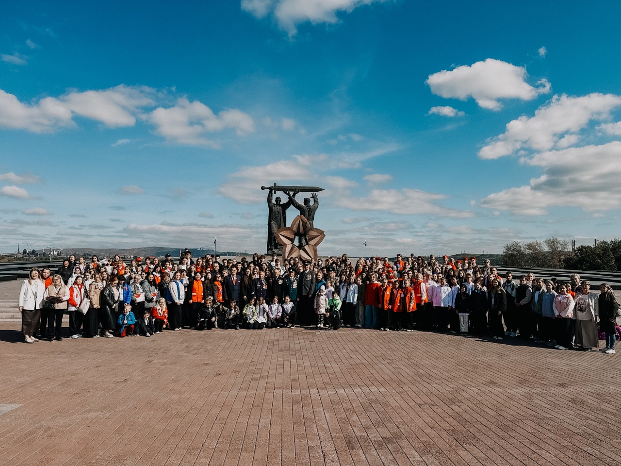 После официальной части, которая состоялась в Дворце творчества детей и молодёжи, команды муниципальных образований Челябинской области отправились к сердцу Магнитогорска - монументу «Тыл — фронту».